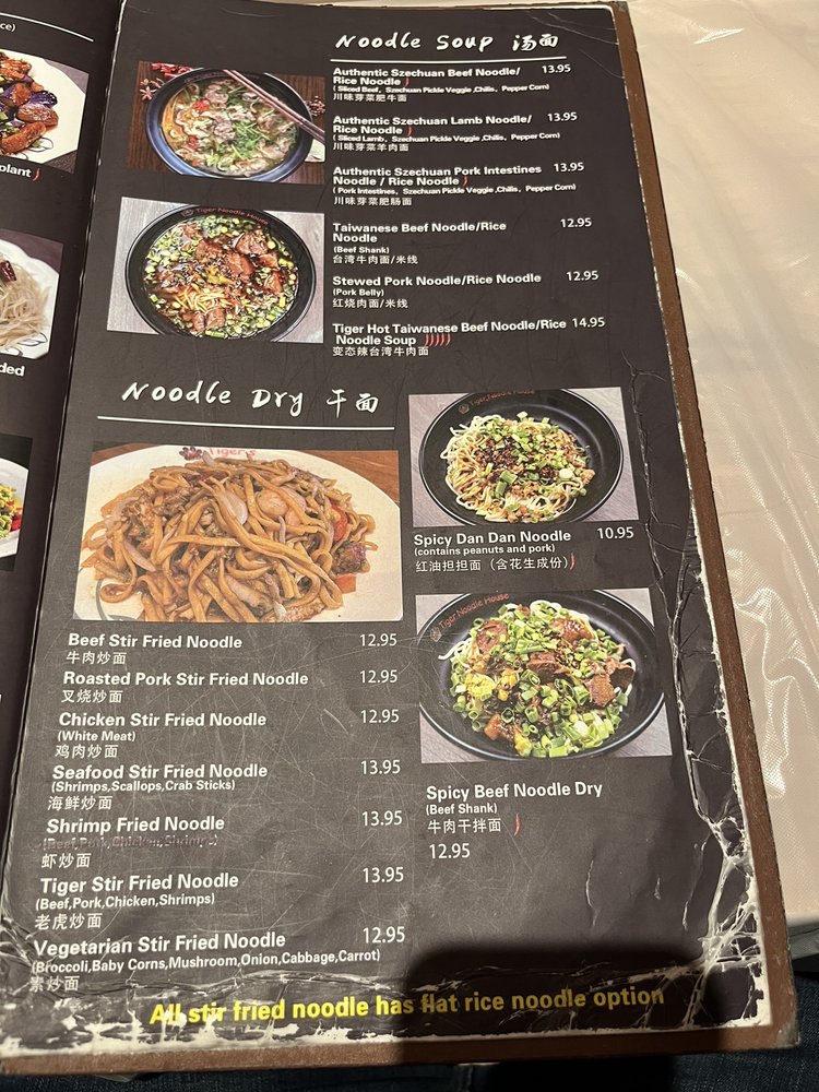 Welcome to Tiger Noodle House, a vibrant haven for Szechuan cuisine nestled in Houston, Texas. This trendy spot specializes in authentic Szechuan noodles and soups, offering a delightful journey through bold flavors and unique spices. Guests can savor dishes like the Beef Mao and the Chicken Spicy Pot, each prepared to perfection with rich, aromatic spices that transport you straight to Chengdu.